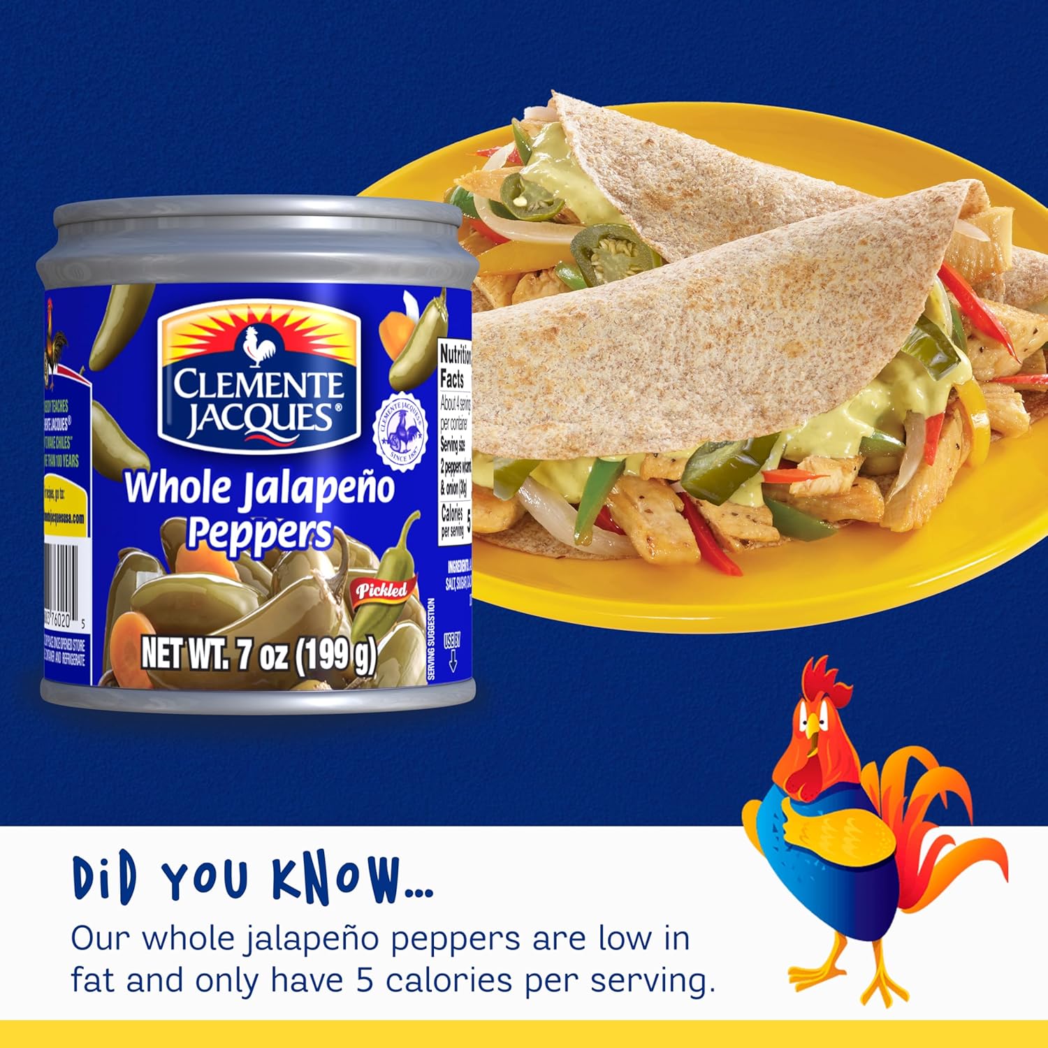 Enjoy all the flavor that we bring to your table with Clemente Jacques Whole Jalapeño Peppers, they are the spicy and delicious touch for your meals.Savor the unmatched quality of more than 130 years of canning experience with Clemente Jacques canned jalapeno. Instantly add a delicious zing to your favorite dishes with these flavorful spicy jalapenos. Use them in your nachos, salsa, tacos, or as a hot dog or hamburger relish. Make it a staple in your kitchen's pantry and bring it with you on picnics or cookouts. Packed in a delicious pickle solution, each canned jalapeno is made of freshly picked peppers to ensure its quality and taste.
